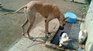 ダックス君達グレートデンやアイリッシュセッターの熱烈歓迎にびびる中